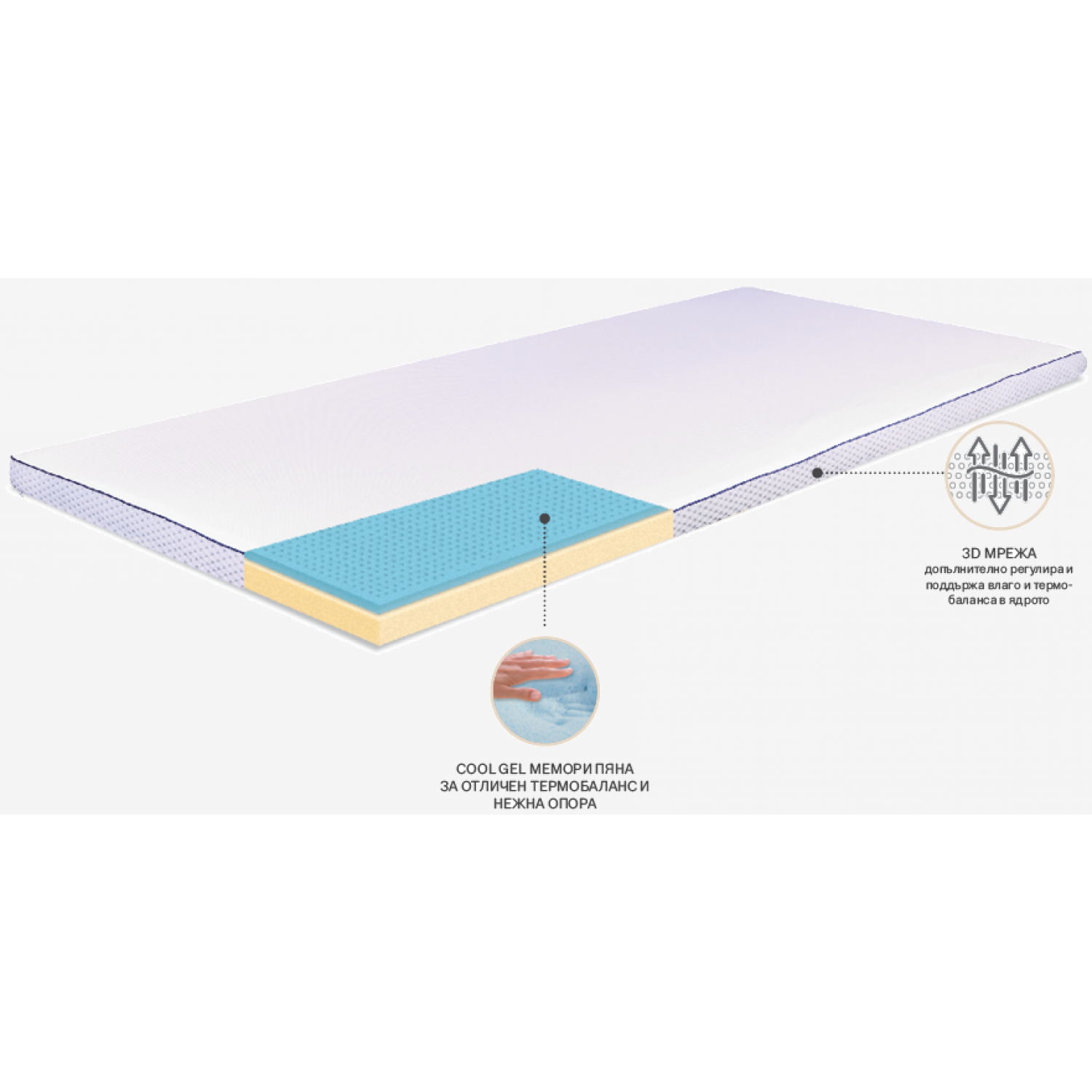 - Мемори пяна с охлаждащи гел капсули