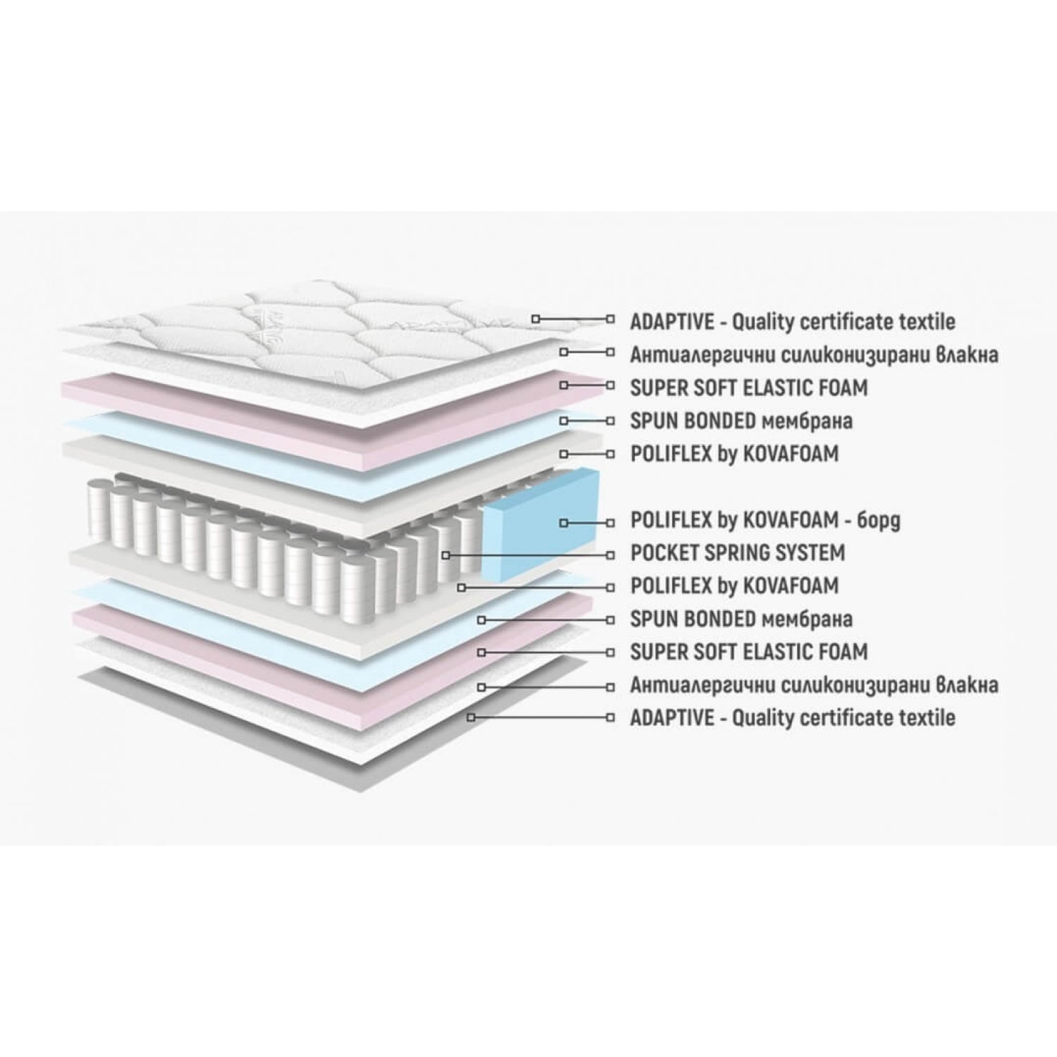 | Състав | Покет пружини |